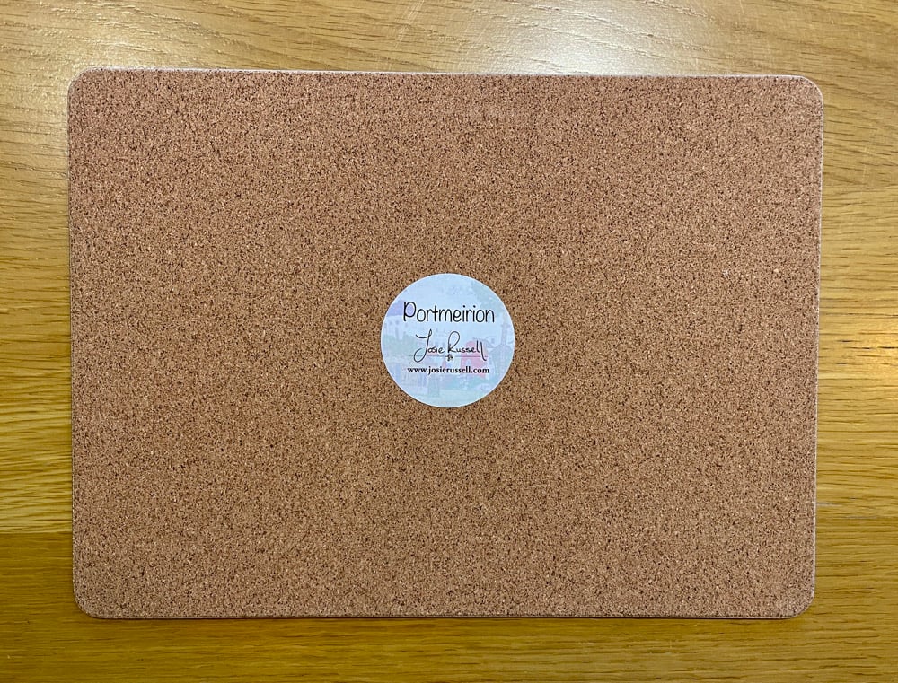 This is a cork-backed, standard-sized placemat (28 x 21 cm) with wipe-clean vinyl finish.